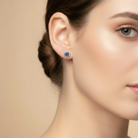 Blue Sapphire Pavé Cluster Stud Earrings for womens – Pure 925 Silver