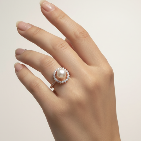 Regal Pearl Halo Ring for Women – Pure 925 Silver