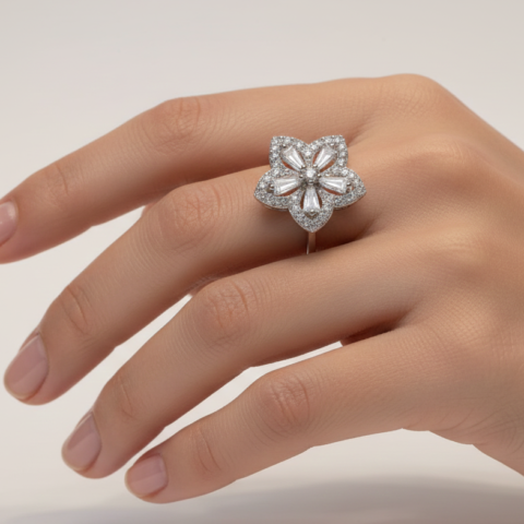 Sunburst Floral Ring for womens – Pure 925 Silver