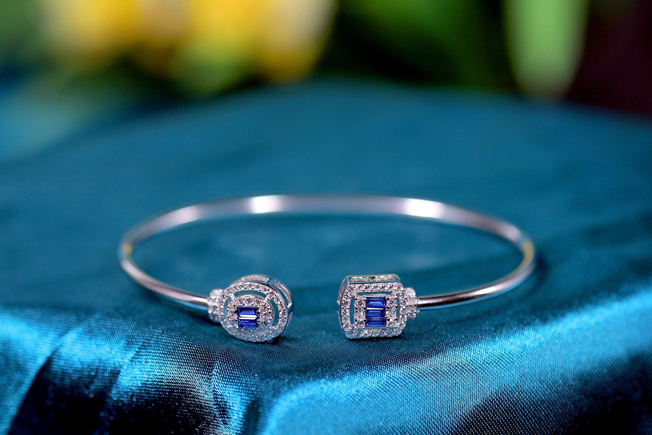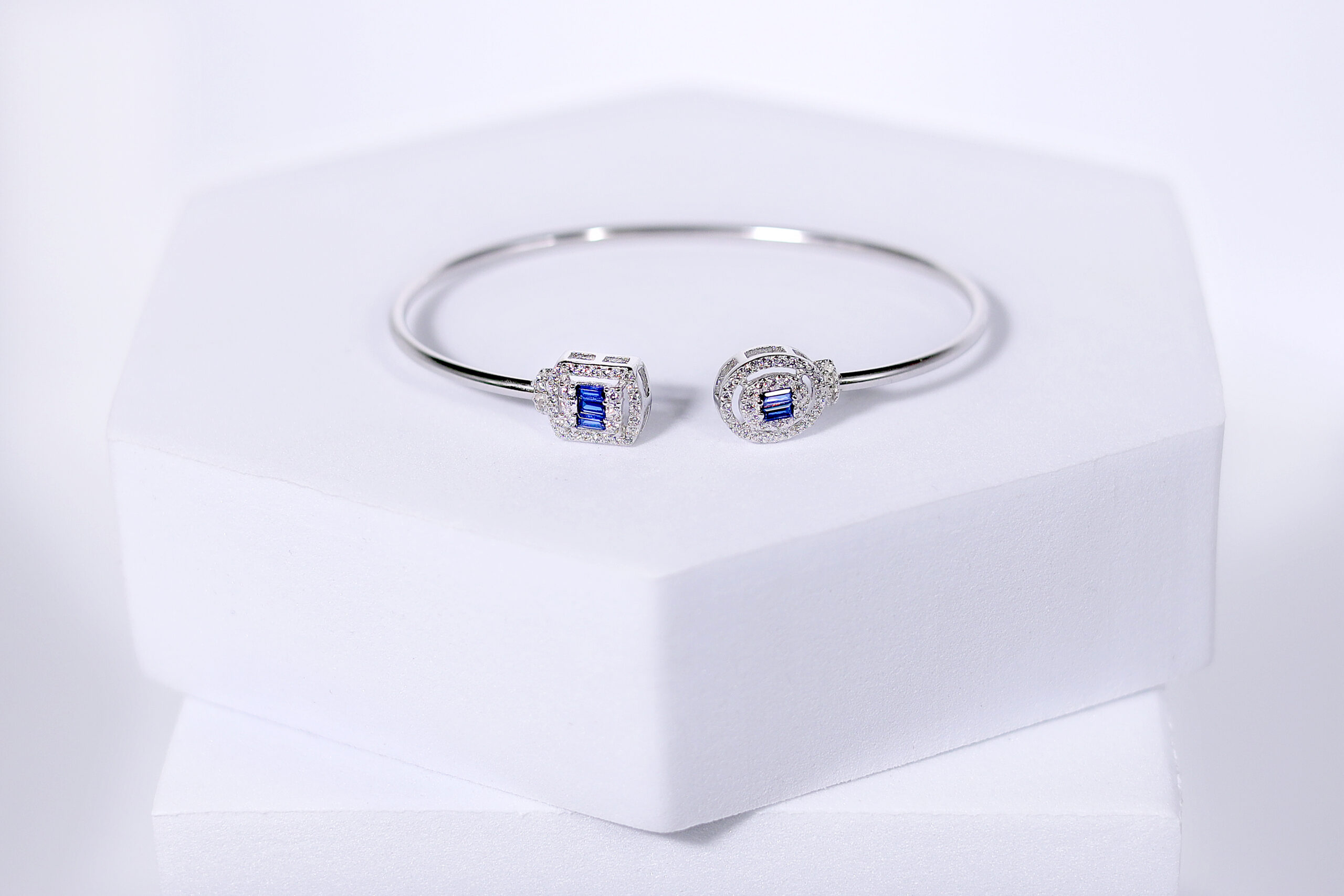 Bleu Sapphire Verge Silver & Stone Bracelet for womens – Pure 925 Silver