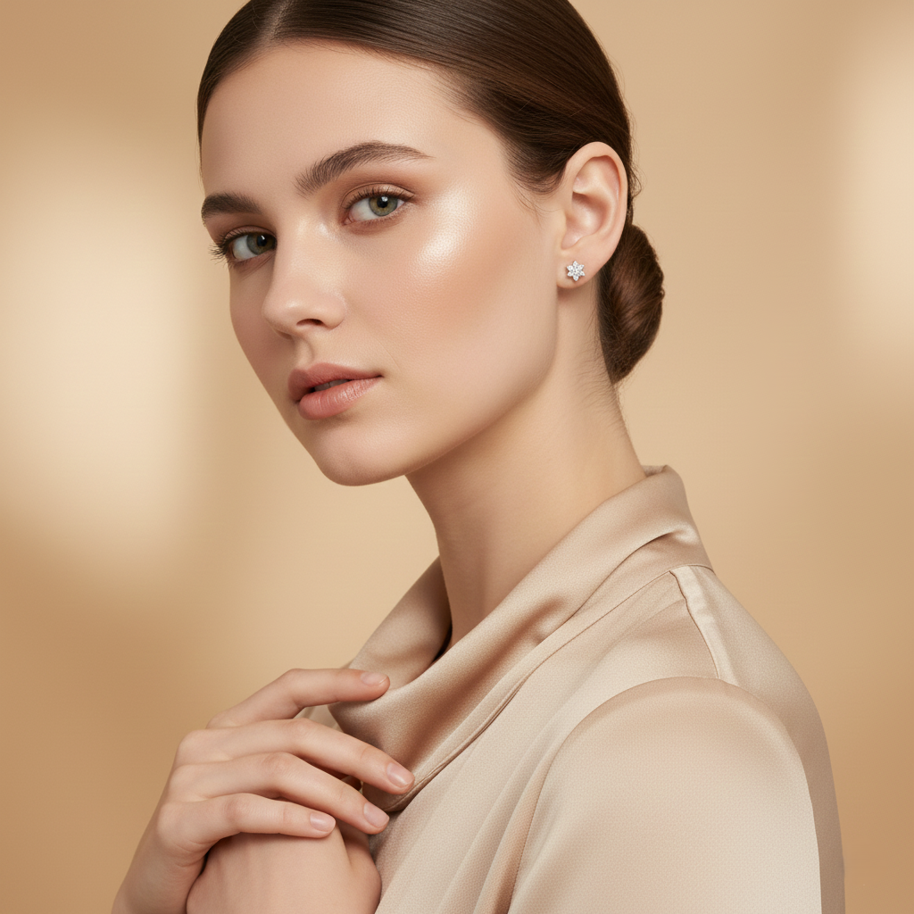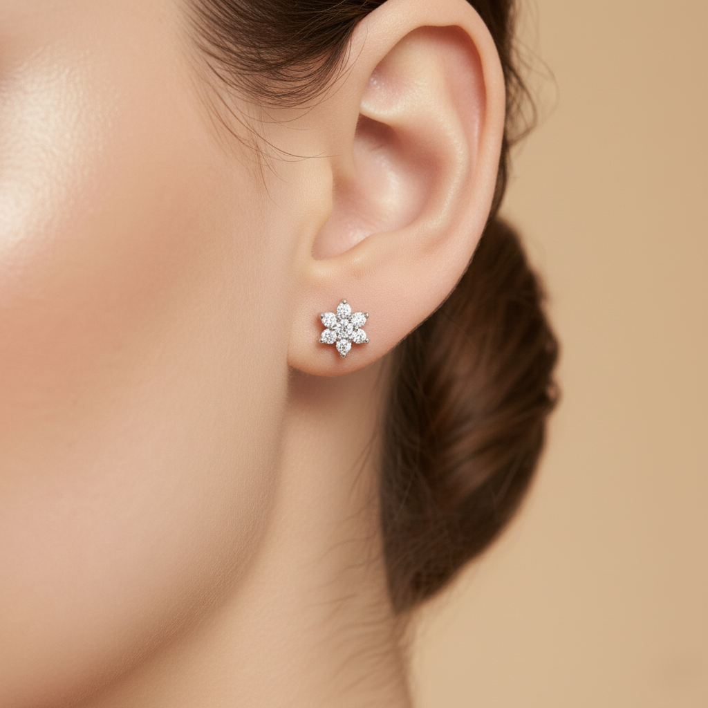 • Floral Bloom Stud Design – soft, symmetrical, and elegant