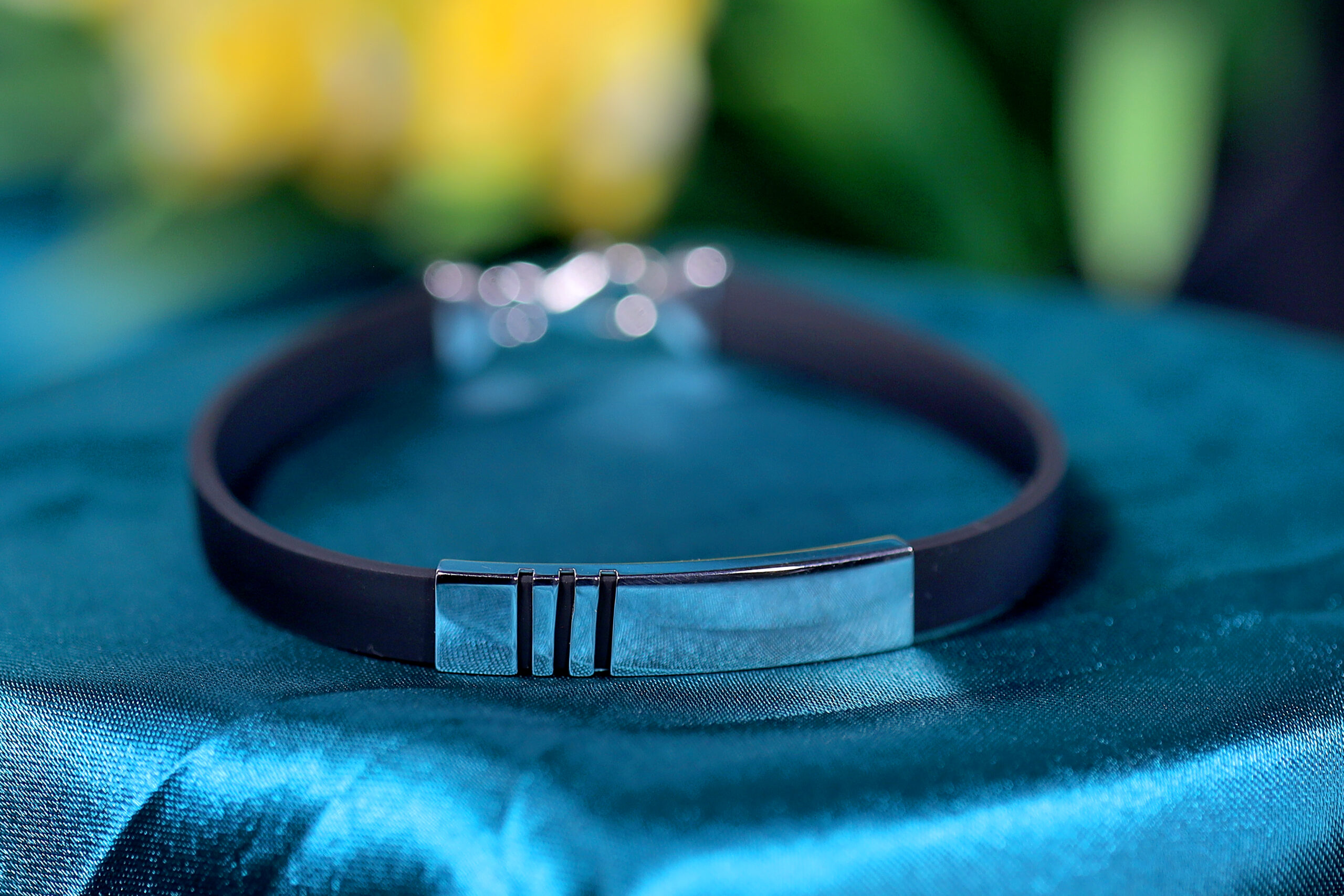 The Ecliptor III Bracelet blends dark resilience with polished silver—three engraved lines, one bold direction.
