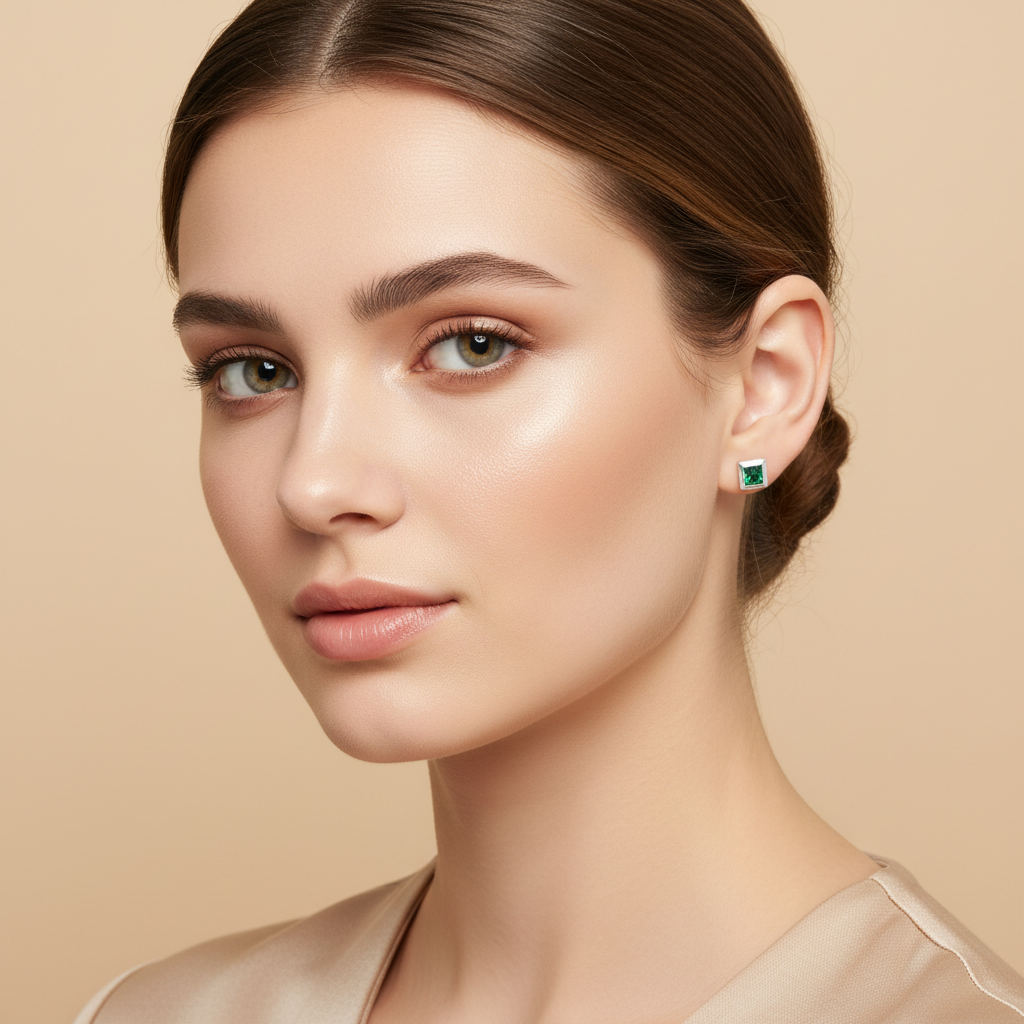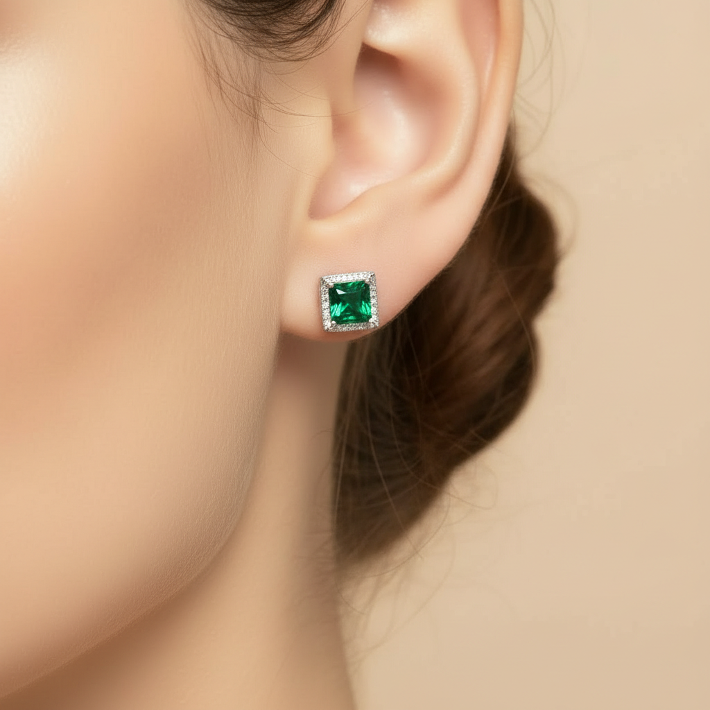 Fresh, refined, and unmistakably elegant. The Green Square Emerald Stud Earrings feature vivid square-cut emerald-green stones framed in sleek sterling silver — a minimalist design that delivers maximum impact with subtle sophistication.
