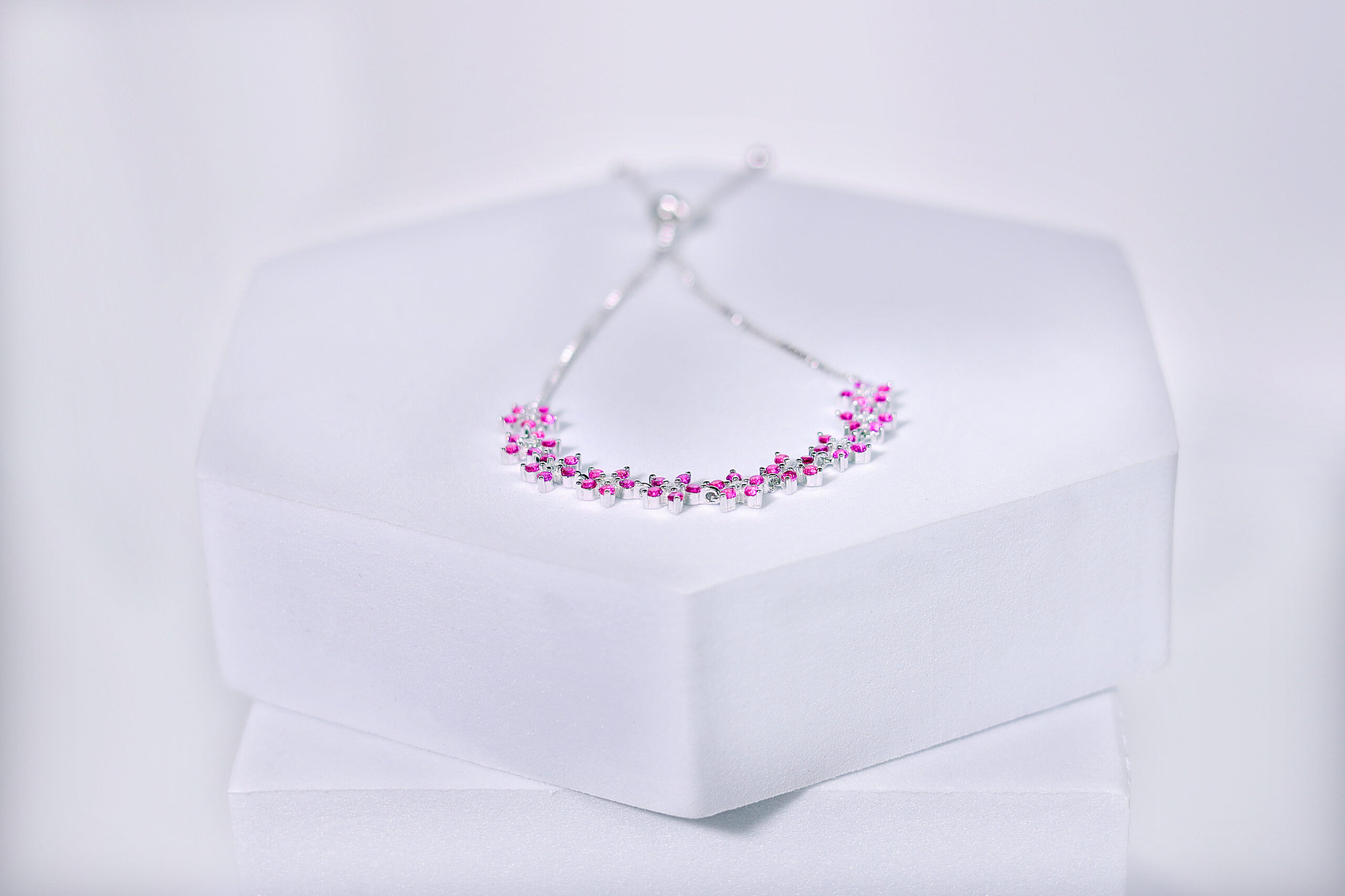 Mirabelle Pink Drape Silver & Stone Bracelet for womens – Pure 925 Silver