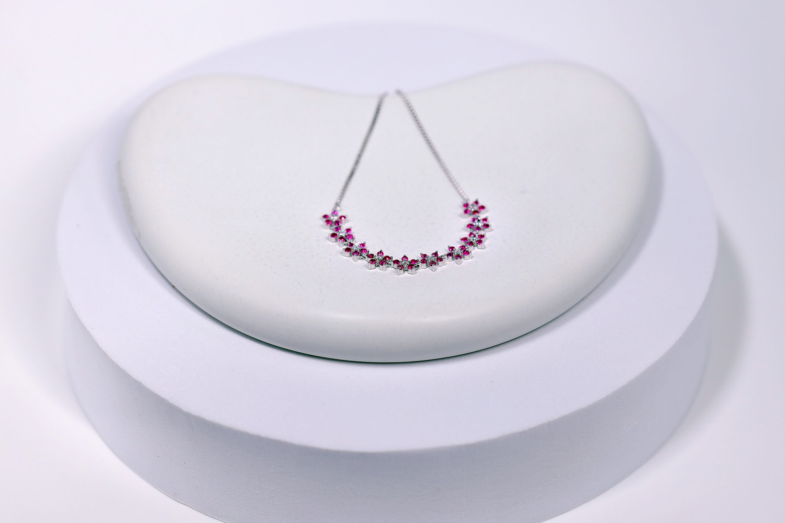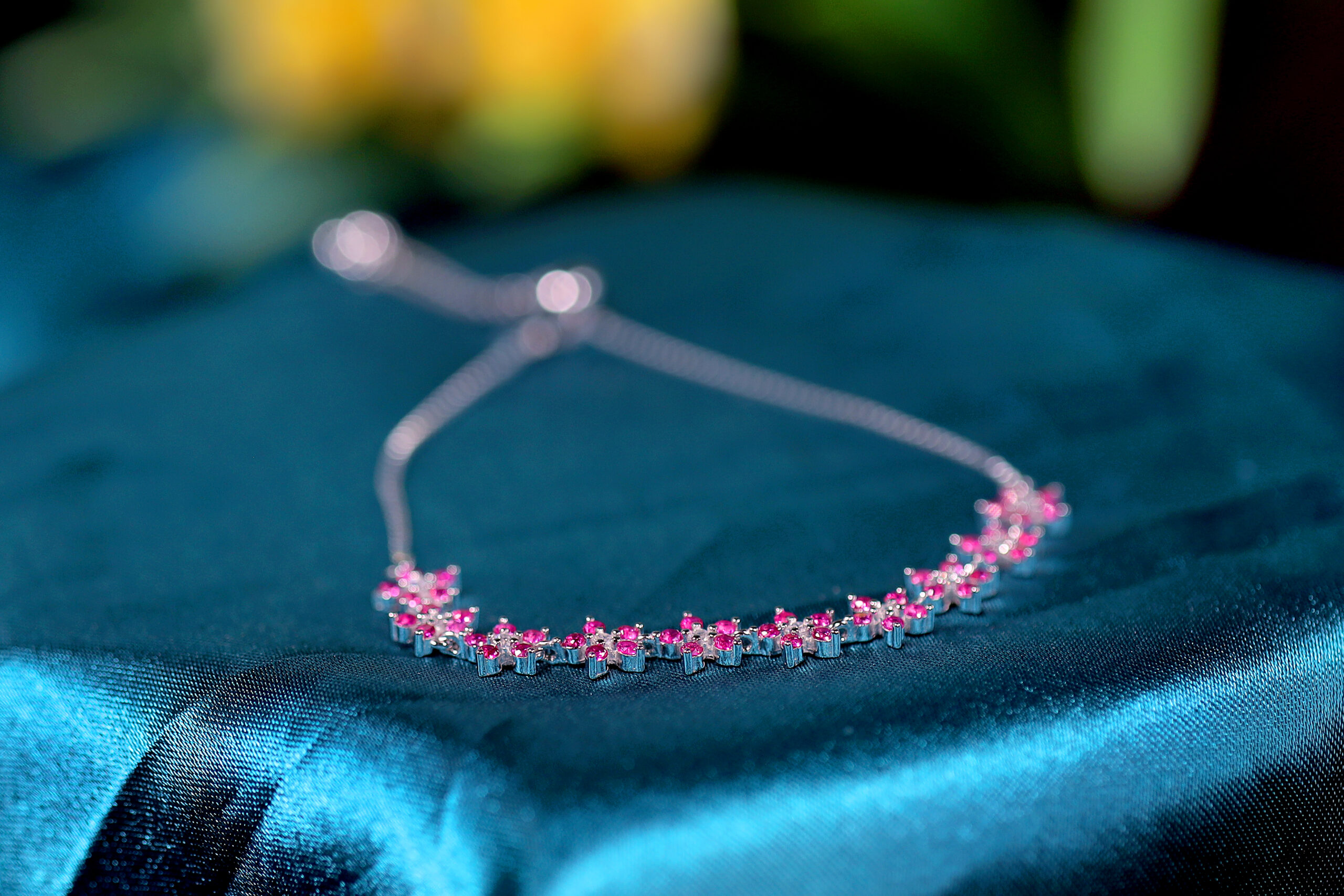 Delicate charm meets vivid elegance in the Mirabelle Pink Drape Bracelet. Crafted from pure 925 sterling silver, this stunning piece showcases a graceful flow of floral-inspired pink stones, beautifully aligned to mimic a blooming garden. Its feminine allure and soft sparkle make it the perfect statement of romance and sophistication.
