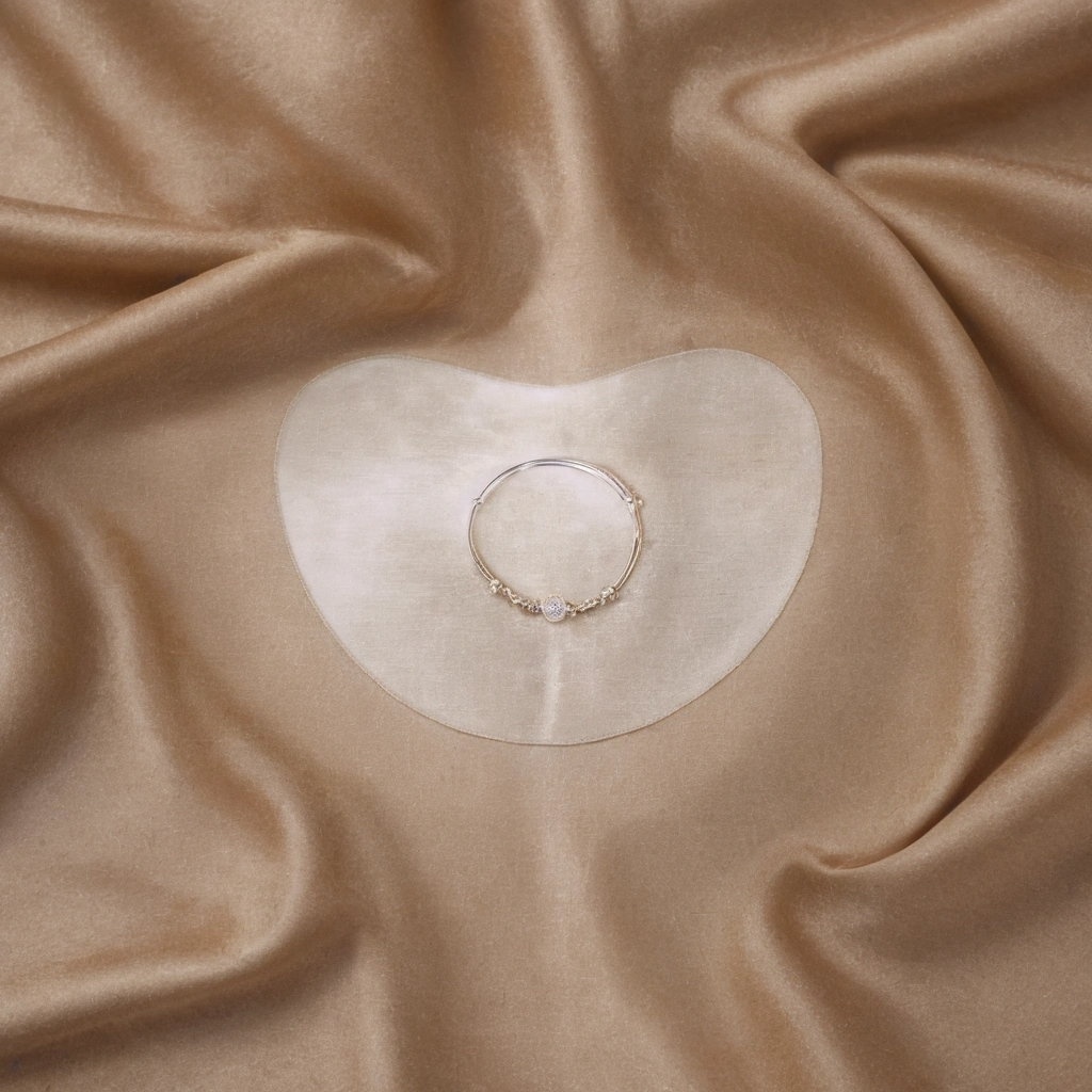 Let their little hands shine with grace and joy. The Moonlit Melody Silver Kada is a pure 925 sterling silver bracelet, designed with love and care to reflect the sweet rhythm of childhood.