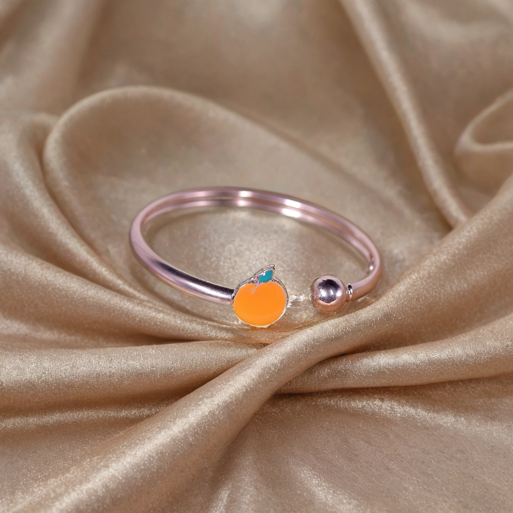 Orange Fruity Blossom Silver Kada for Kids – Pure 925 Silver