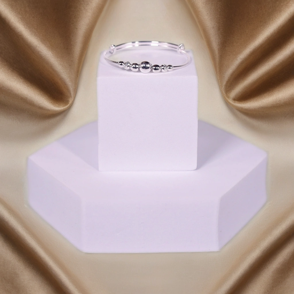 Shiny Beads Hoops Silver Kada for Kids – Pure 925 Silver