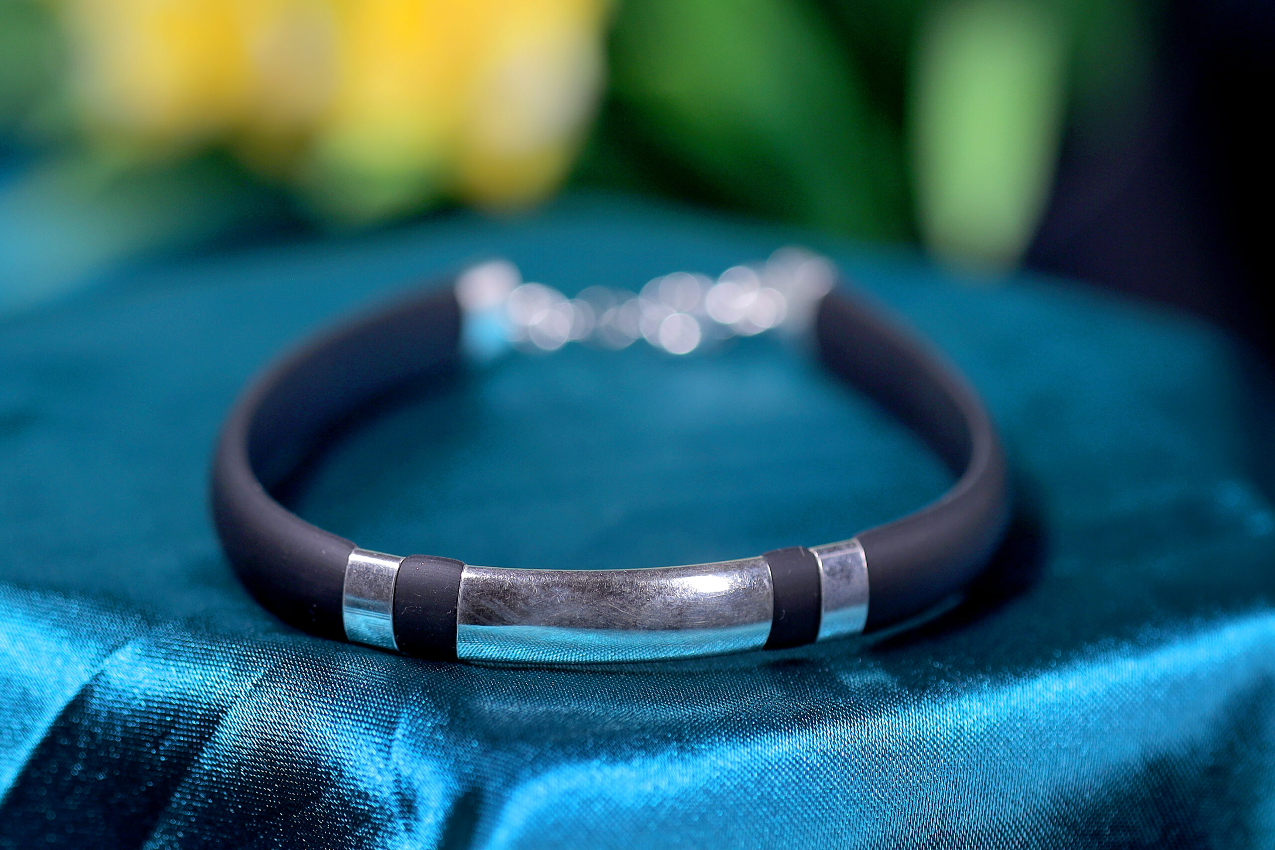 The Solid Gravix Bracelet is designed with grounded strength in mind. With its curved pure 925 silver centerpiece flanked by bold black segments, it symbolizes resilience and sophistication—crafted for men who lead with quiet confidence.