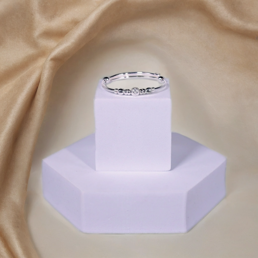 Let your child shine bright with timeless tradition and elegance in the Starlit Treasure Silver Kada. Beautifully handcrafted in pure 925 sterling silver, this kada features intricately carved beads that reflect a celestial charm—bringing blessings, grace, and a gentle sparkle to your little one’s journey.