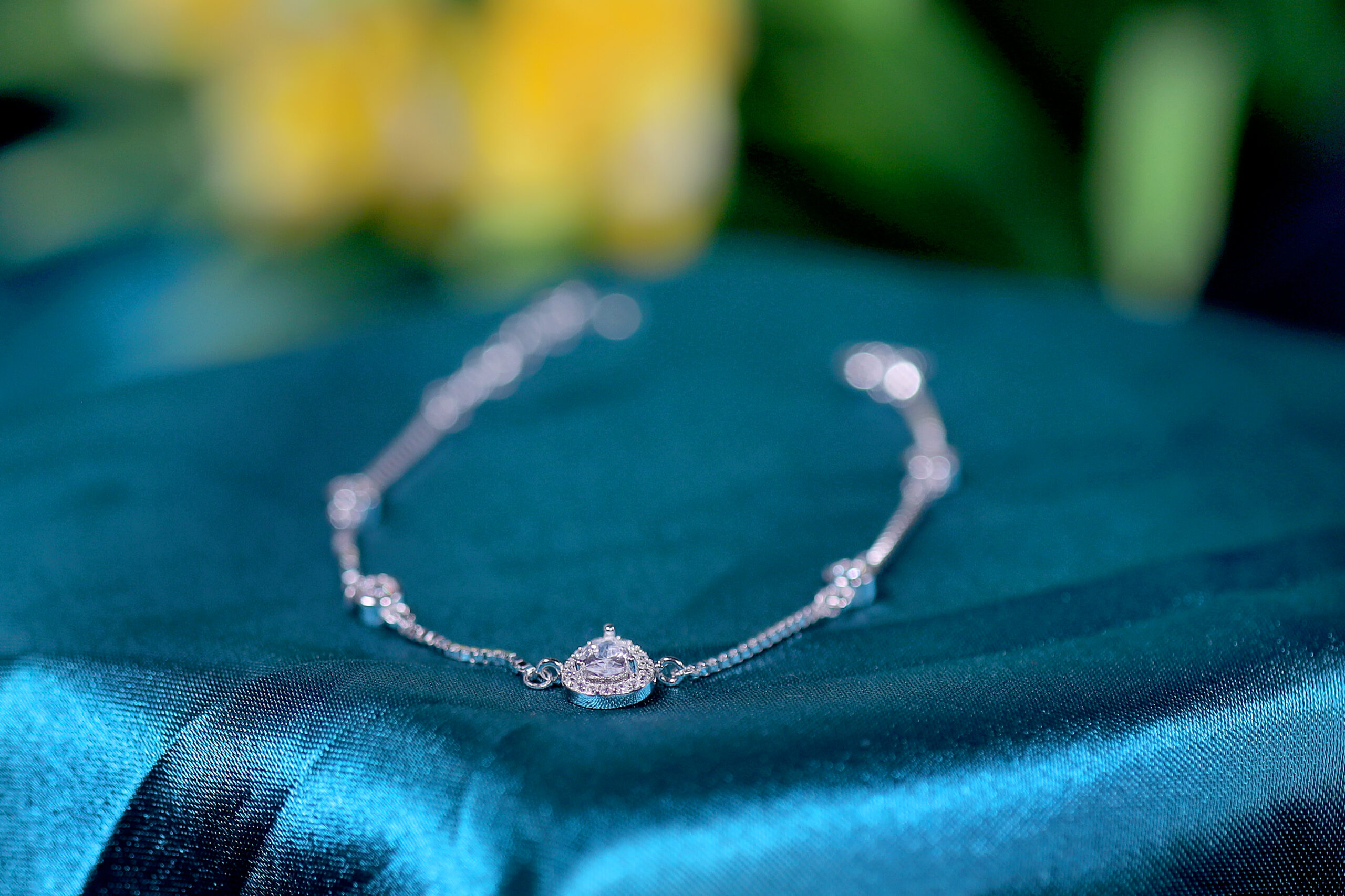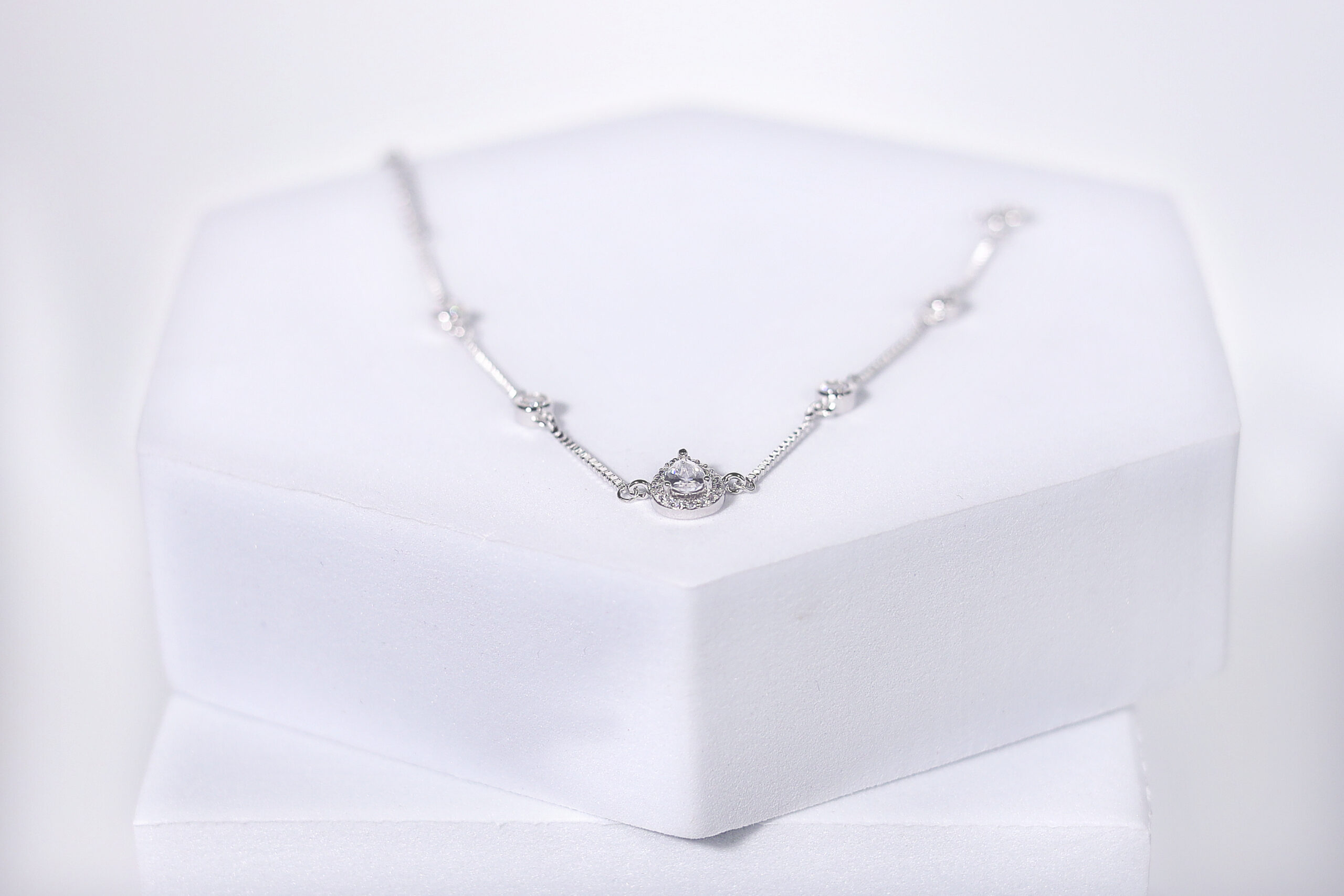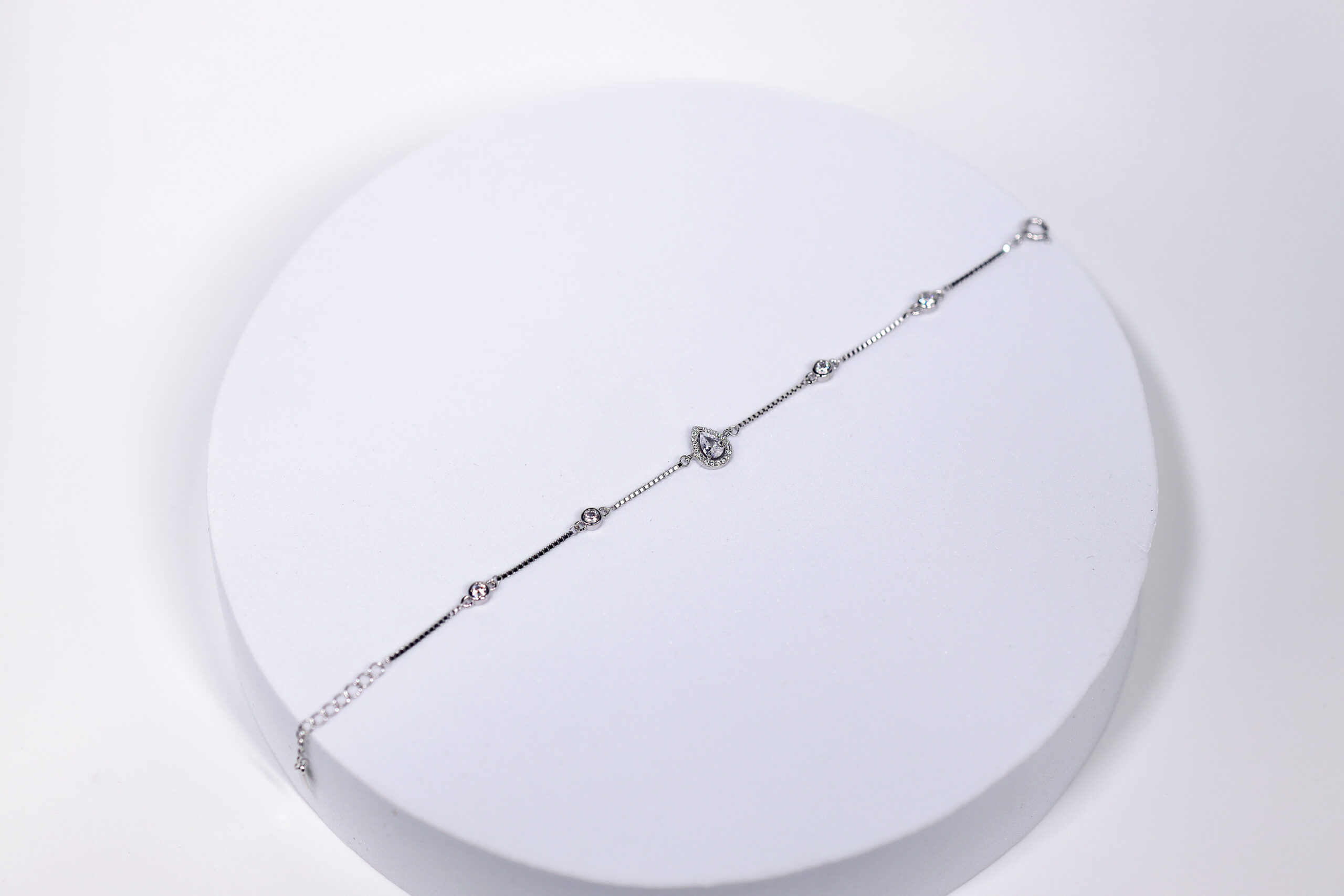 Delicate and dazzling, the Teara Glow Charm Bracelet blends fluid minimalism with a pure 925 sterling silver teardrop centerpiece that glows with quiet grace. Suspended on a fine silver chain, each bezel-set stone reflects refined light in every move.