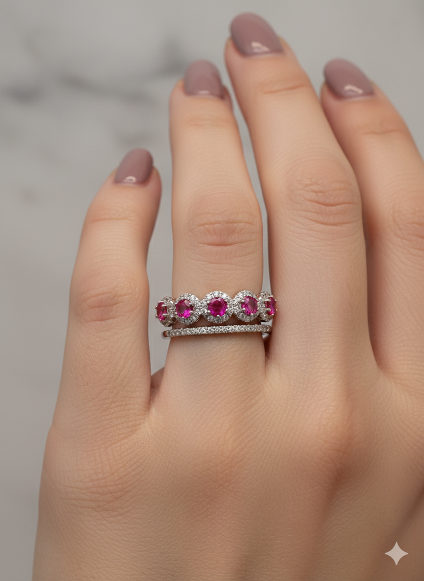 The Velvet Rose Stack Ring is for the woman who appreciates “quiet luxury” with a romantic twist. It doesn’t rely on bulk to make a statement; instead, it relies on intricate detail and exceptional sparkle. It brings a touch of eternal springtime to your wardrobe, looking just as beautiful with a casual knit sweater as it does with a silk evening gown.