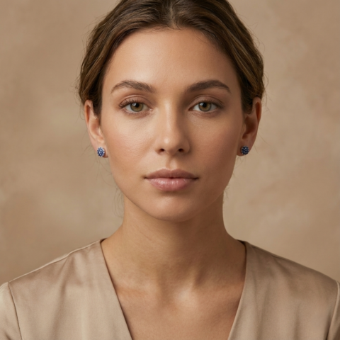 Blue Sapphire Pavé Cluster Stud Earrings for womens – Pure 925 Silver