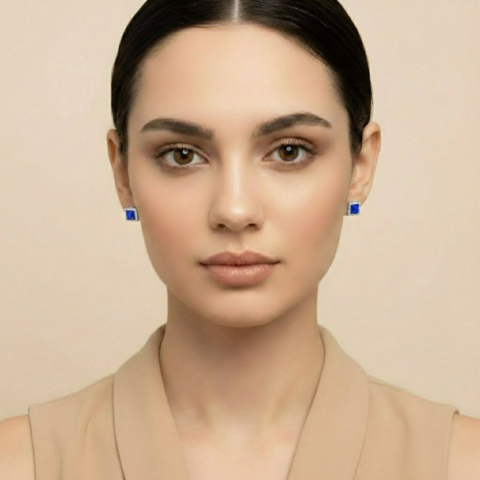 Blue Square Sapphire Studs Earring for womens – Pure 925 Silver